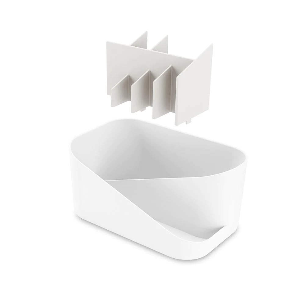 קופסת אחסון לאיפור עם תאי אחסון בגדלים שונים ותוספת נשלפת. עיצוב פתוח, מאפשר גישה קלה ותצוגה נוחה. ניתן להניח את הארגונית על יד הכיור או על טואלט.
