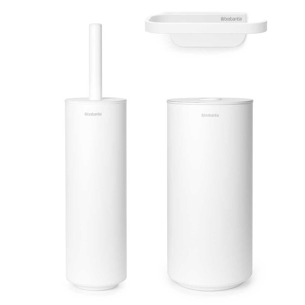 סט טואלט לשירותים MindSet ברבנטיה, לבן מינרלי: מברשת אסלה סיליקון, דיספנסר ומתקן קיר לנייר טואלט Brabantia