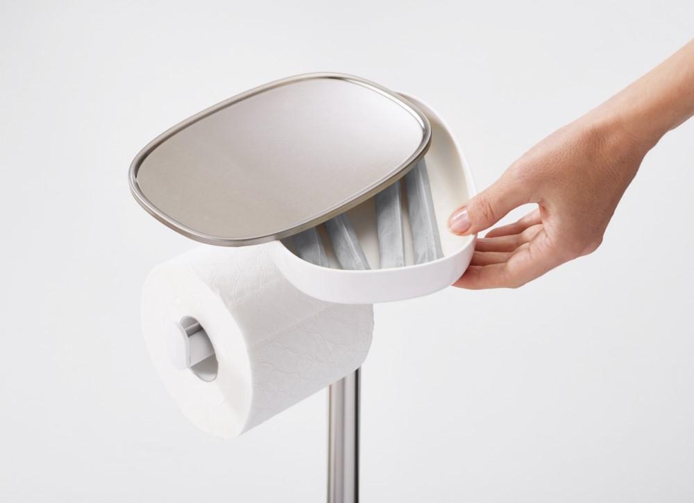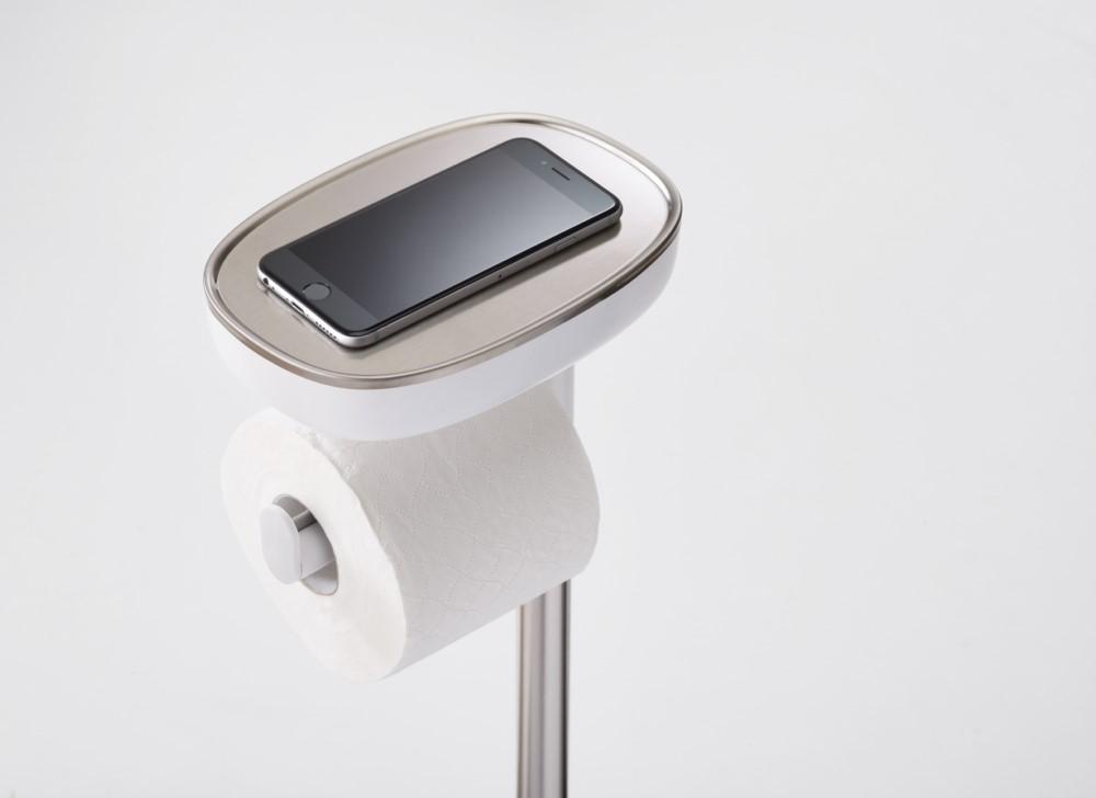 מתקן נייר טואלט המספק מקום לאחסון עד 4 גלילי נייר טואלט וכולל מדף רב תכליתי להנחת ספר או פלאפון נייד. בסיס המדף מהווה קופסת אחסון למוצרים נוספים. חומרים: פלדת אל חלד. מידות: 68*16.5*22.5 ס”מ. הוראות ניקוי: באמצעות מטלית לחה.