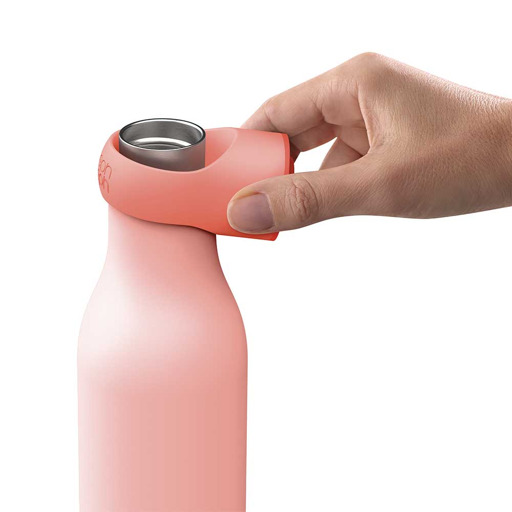 המכסה מעוצב באופן דמוי ידית שמאפשר נשיאה נוחה של הבקבוק ממקום למקום.