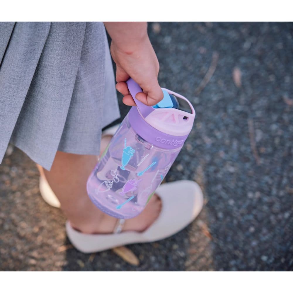 בקבוק קונטיגו לילדים עם קשית נשלפת ומכסה קל לניקוי. המוצר מיועד לשתייה קרה בלבד ובעל מכסה אטום בטכנולוגיית AUTOSEAL. בלחיצת כפתור הקש קופץ לשימוש נוח וזמין גם ביד אחת, כאשר הפיה אינה בשימוש, היא מוגנת מפני לכלוך וחיידקים. ניתן לשאת את הבקבוק לכל מקום בעזרת ידית נשיאה מובנית בעלת מבנה נוח לאחיזה.