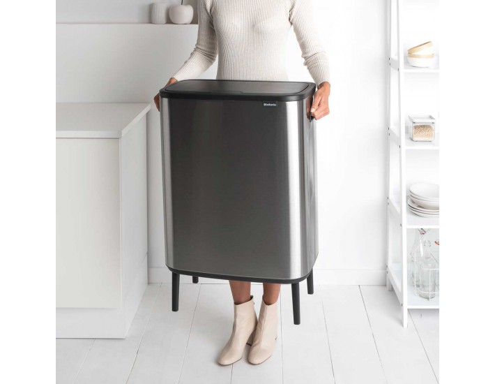 פח האשפה BO טאץ’ 60 ליטר מבית ברבנטיה בנירוסטה מט מציע עיצוב יוקרתי, פתיחה רכה בלחיצת טאץ’, וקלות שימוש. הפח יציב ונוח, עם פח פנימי נשלף, מתאים למטבחים גדולים וכולל 10 שנות אחריות.