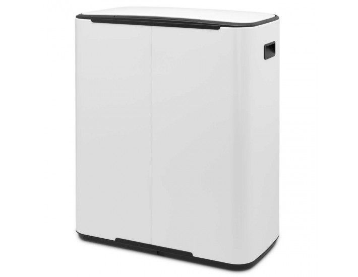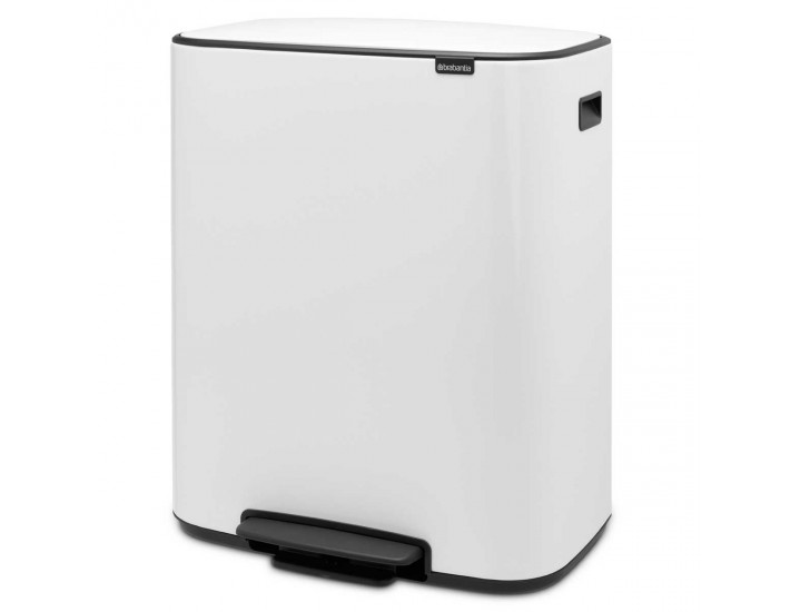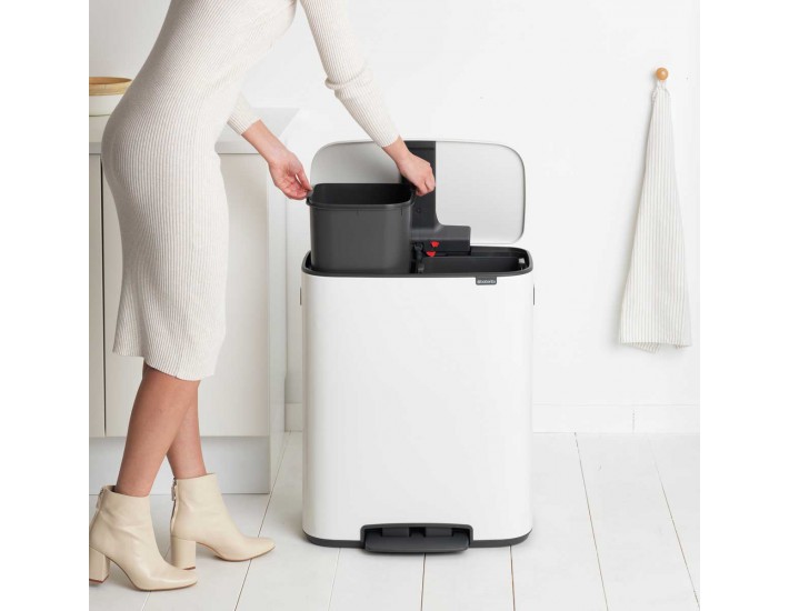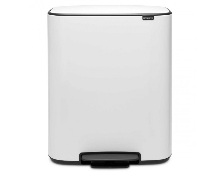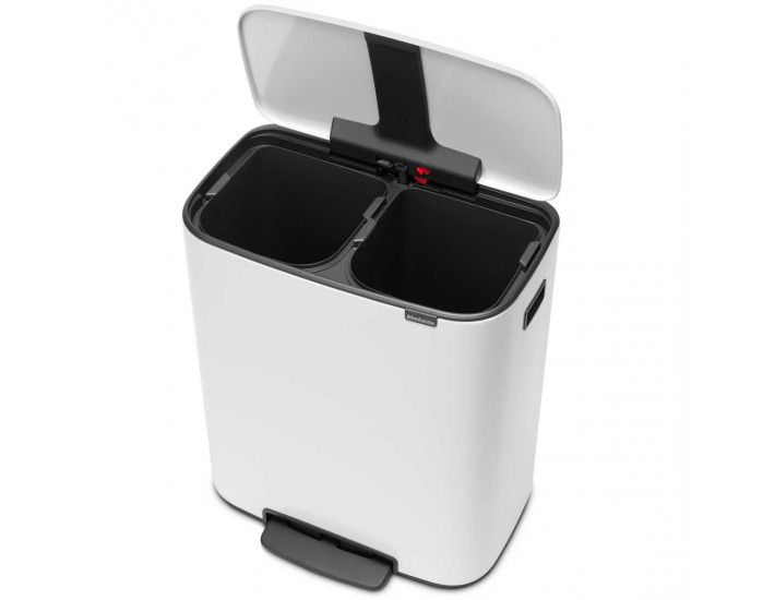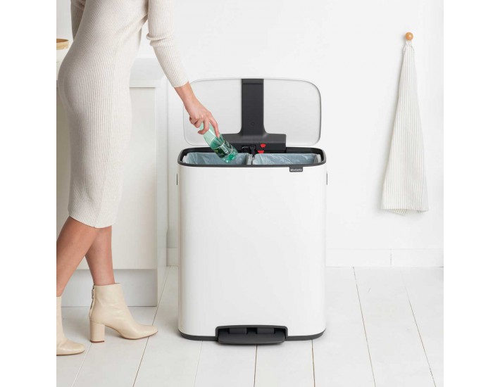 BO פדל פח הפרדה 30+30 ליטר, לבן Brabantia – פח הפרדה יפה ויוקרתי – 60 ליטר של עיצוב יפיפה של פח מיחזור עם שני תאים נפרדים להפרדת אשפה אורגנית ומיחזור