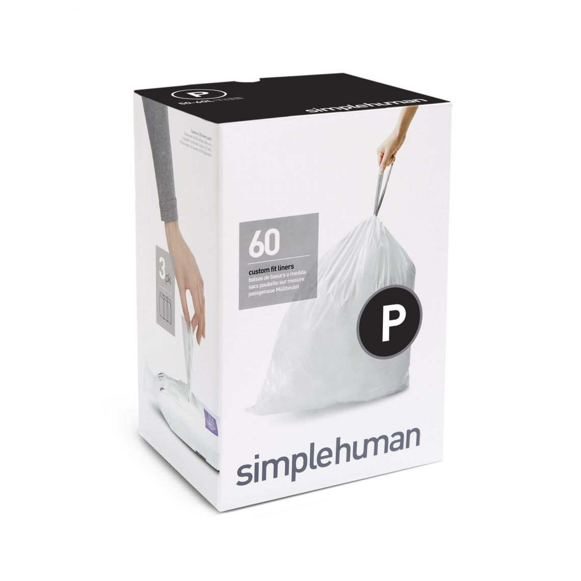 60 שקיות במארז. התאמה מושלמת! חברת סימפלהיומן מייצרת שקיות המותאמות באופן מושלם לכל פח באופן אישי. ניתן לזהות את השקית המתאימה לפח שלכם בעזרת האות הכתובה במאפייני הפח (A-Z). השקיות מוסתרות בשוליים של הפח ואינן מפריעות למראה האלגנטי והנקי של פחי סימפלהיומן.