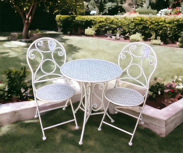 סט ישיבה מעוצב מתכת שולחן + 2 כסאות בצבע שמנת