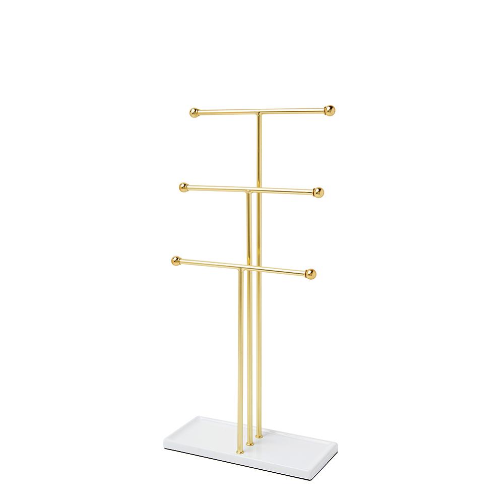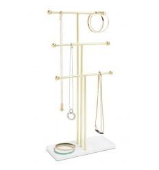 מעמד תכשיטים מעוצב ופרקטי לתליית תכשיטים מכל הסוגים. בתחתית המעמד ישנה צלוחית להנחת תכשיטים ואביזרים שאינם נתלים על המסילות. בסיס המעמד מרופד כלפי מטה על מנת לשמור על משטח ההנחה.