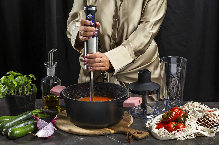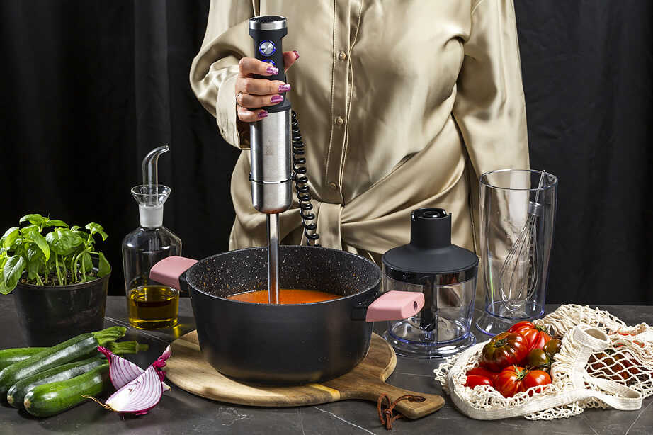 מוט בלנדר עם בקרת מהירות המאפשרת לך לשנות מהירויות בצורה חלקה באמצעות יד מסתובבת