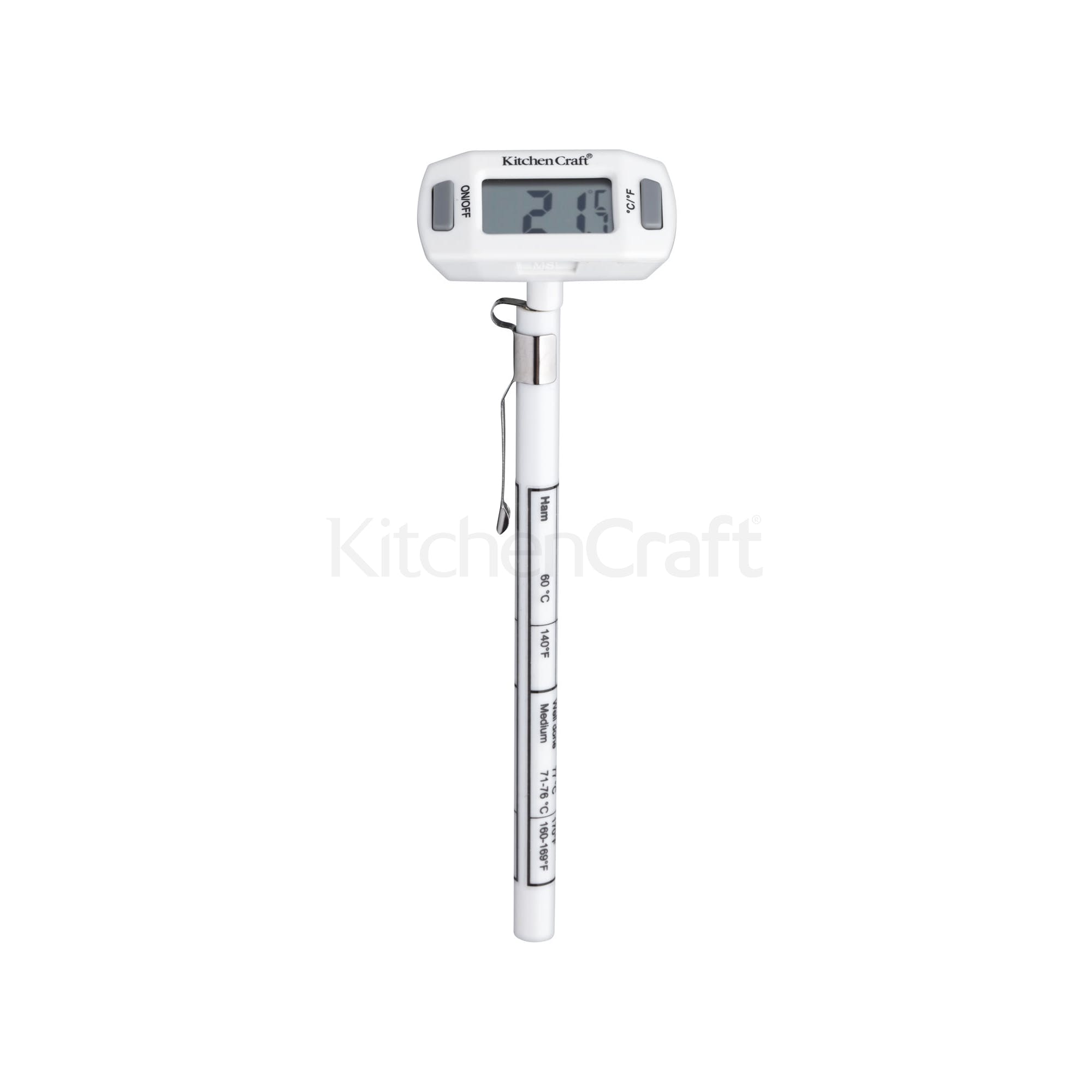טרמומטר המאפשר מדידת טמפרטורה מדוייקת בעת בישול. המוצר מתאים במיוחד לבישול מדוייק של סוגי בשר. הטרמומטר כולל צד דגיטלי גדול וברור. כאשר המוצר אינו בשימוש ניתן להרכיב עליו את המכסה המצורף.