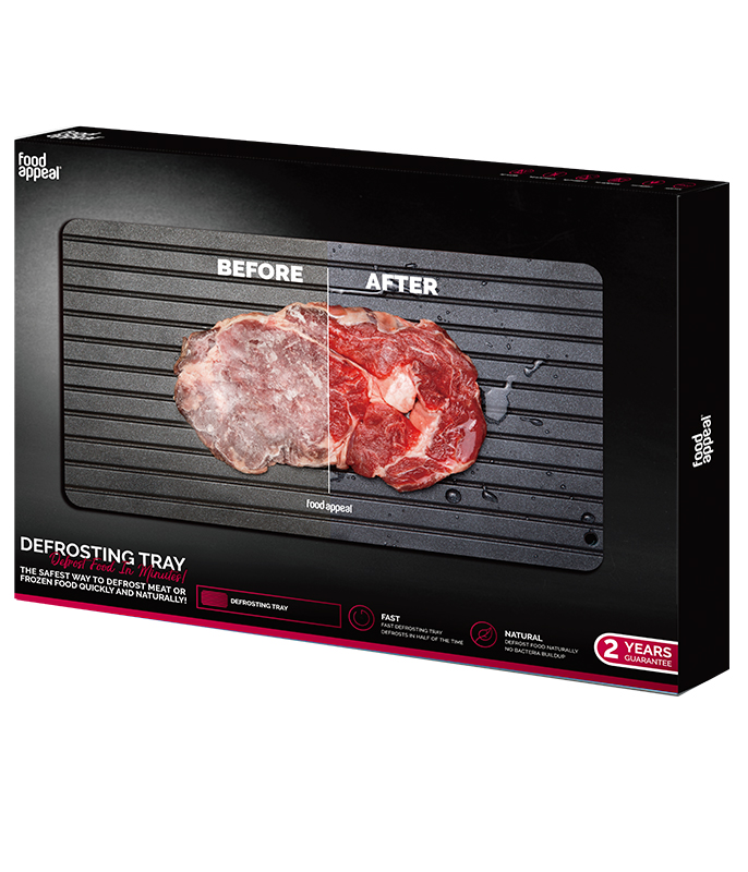 - הפשרה מהירה וטבעית! להפשיר אוכל קפוא ללא חשמל, מים או מיקרוגל.
