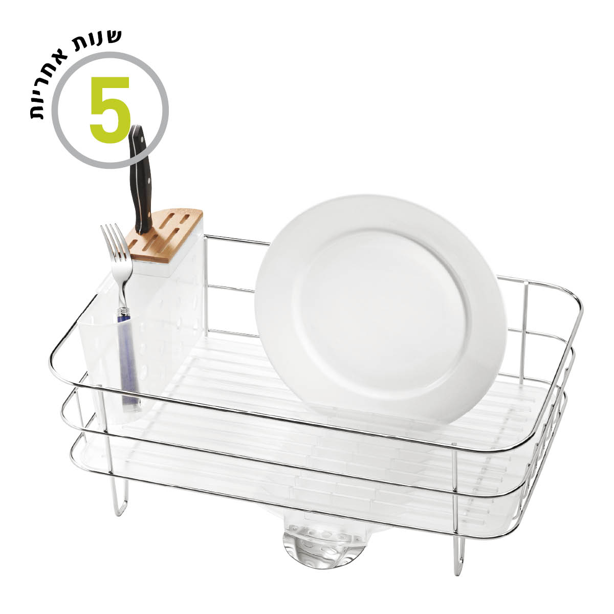 צורתו הצרה של מתקן המיני לייבוש כלים, עם מסגרת הנירוסטה, מתאימה לכל שיש קטן וגדול. למרות גודלו הוא יכול להכיל צלחות גדולות וכלים נוספים. המתקן מגיע עם מגש מובנה לטיפות המים ומשפך הנע על ציר, המנקז את המים ישירות אל הכיור, וכן סכומון עם תאים המאפשר לשמור על הכלים נקיים ומסודרים – אותו ניתן למקום בכל צד של המתקן.