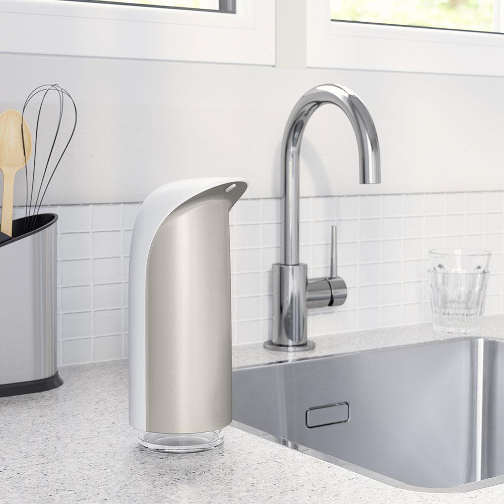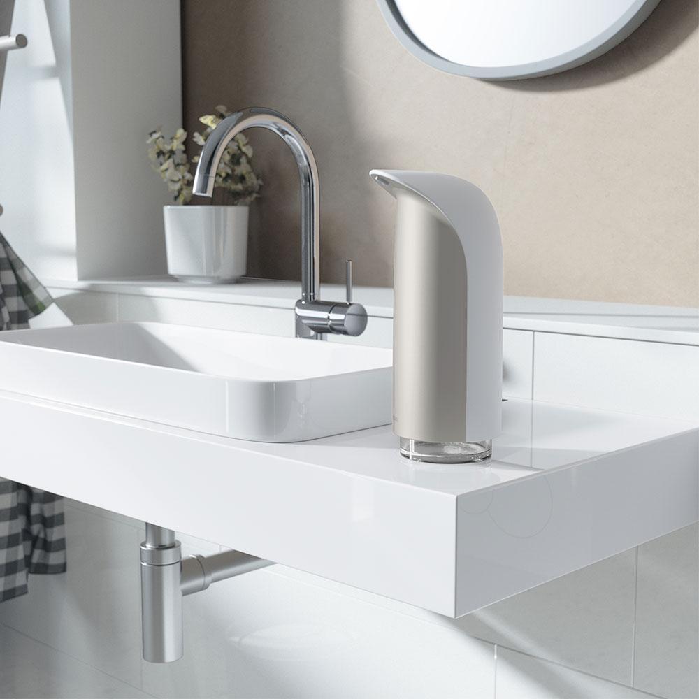 דיספנסר לסבון במראה מודרני עם שני גוונים, מעוצב בצורה ארגונומית עם גימור חלק. החלק התחתון של הדיספנסר שקוף ומאפשר להבחין מתי הסבון מתרוקן והוא קל למילוי מחדש בזכות הפתח הרחב שלו. המתקן קל לניקוי, עמיד מאוד ובעל סיכון נמוך לשבירה. מתאים לשימוש במטבח או באמבטיה.