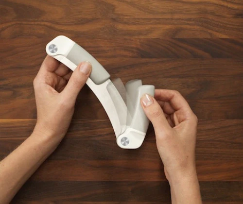 סכין מתקפלת לקיצוץ תבלינים. הסכין הייחודית מעוצבת בקומפקטיות ובטוחה ביותר לשימוש. הידיות של הסכין  מתקפלות ונפתחות כך שבעת האחסון הן נסגרות על גבי הלהב ושומרות עליו ובעת השימוש מתפקדות כידיות אחיזה. משמעות המילה MEZZALUNA באיטלקית היא “חצי ירח”. של החברה הבריטית JOSEPH JOSEPH. הוראות ניקוי ידני בלבד.