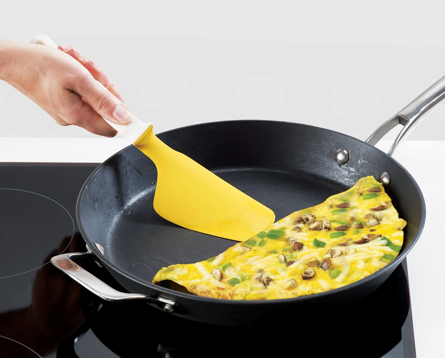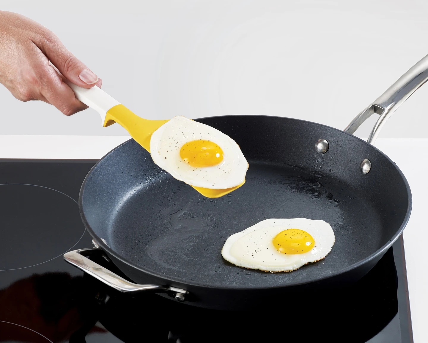למוצר קצה קשיח המתאים להכנת ביצה מקושקשת ושטח פנים רחב המתאים לשימוש בעת הכנת חביתה. מתאים לשימוש בחום של עד 270 °C.
