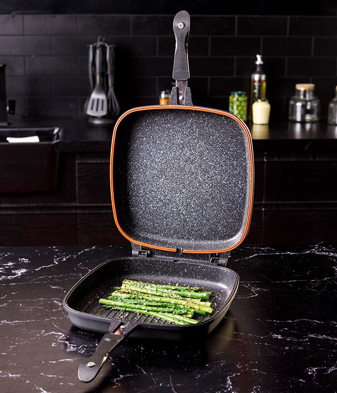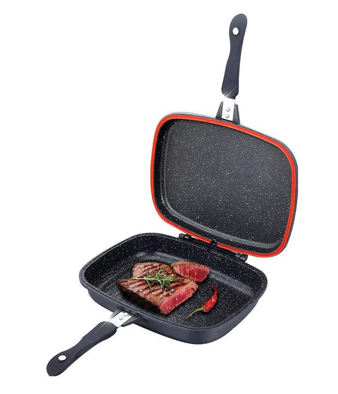 מחבת גריל כפולה אטומה ועמידה, לבישול ללא עשן וריחות!